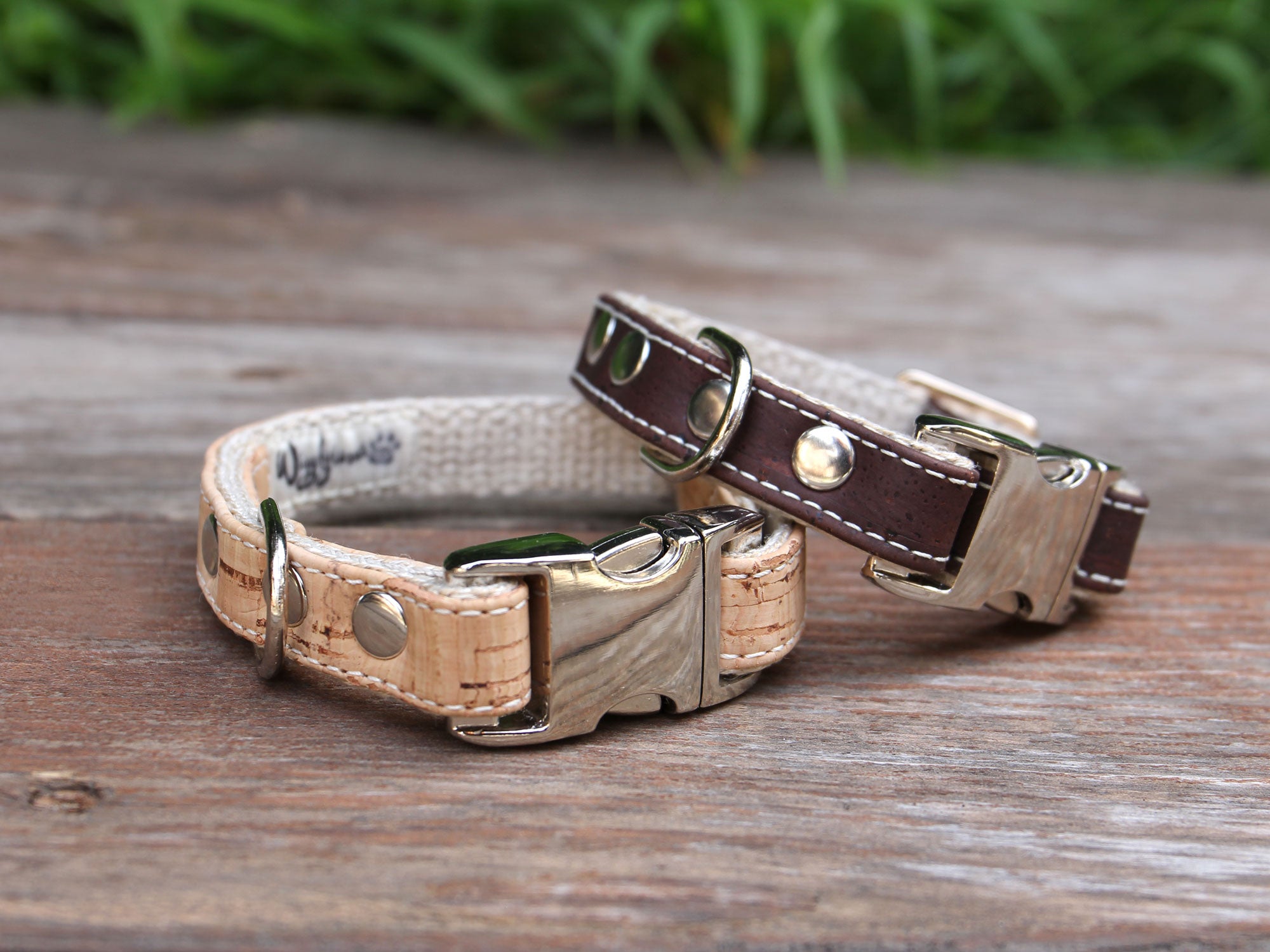 Wigglywoos Dog Collars are made from high quality sustainable materials. We use hemp webbing and cork. Cork is a natural mosquito repellent, is hypo-allergenic and is as durable as leather. Hemp is naturally resistant to ultraviolet light, mold and mildew. Our cork dog collars are vegan. They are a compassionate and environmentally-conscious alternative.