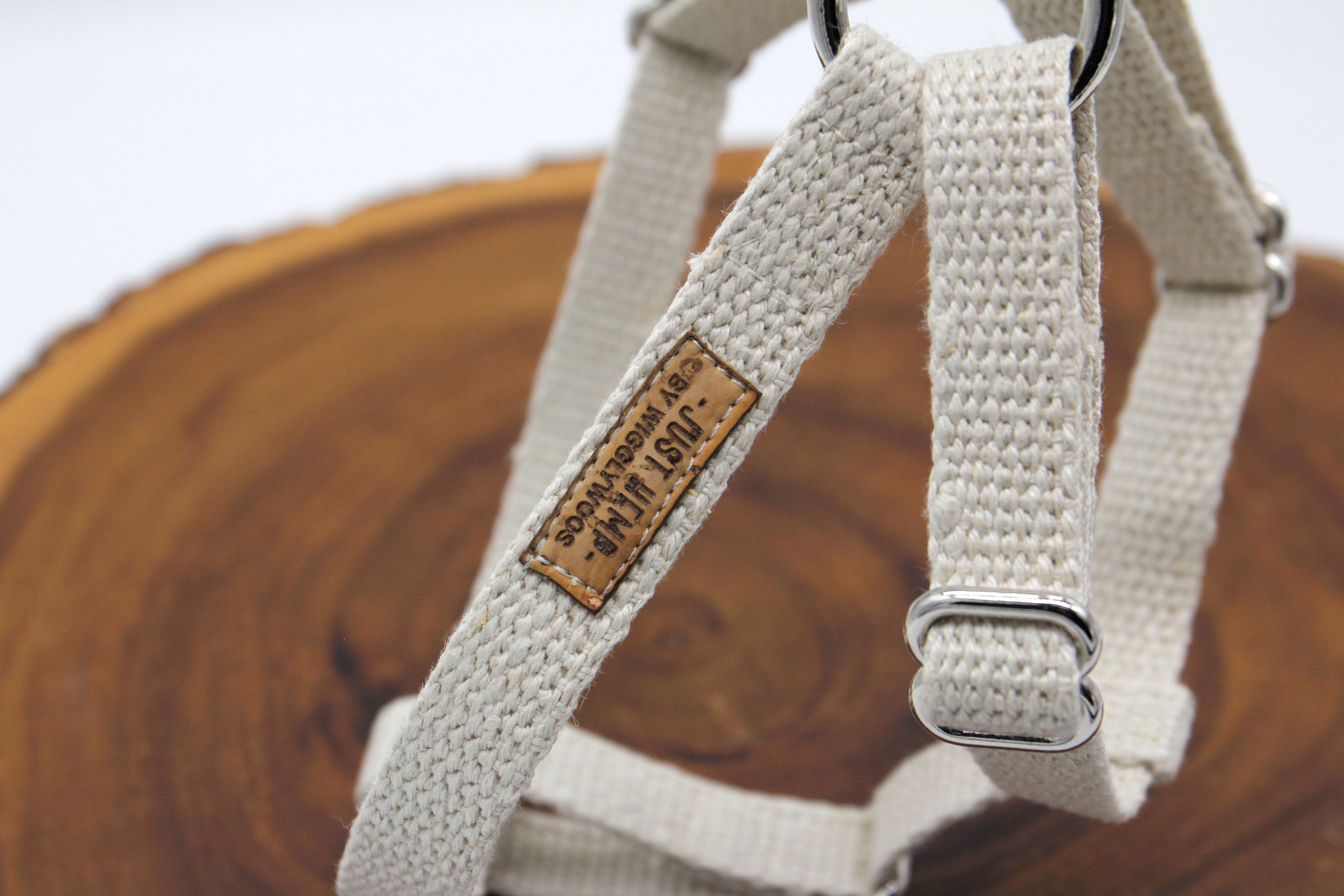 We have been working hard to become as plastic free as possible here at Wigglywoos. All hardware is nickel plated, featuring a contoured side release buckle, 4 areas of adjustability with nickel plated triglides, and double D-rings to leash up and go for a great walk.